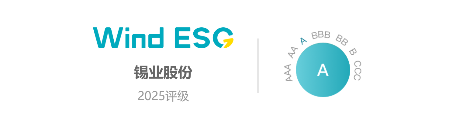 Wind機構是國內領先的金融數據、信息和軟件服務企業,其針對中國企業ESG特點研發構建了Wind ESG評級體系,受到監管機構、金融機構和學術研究機構的廣泛關注和認可。本次獲評A級突顯了權威機構對錫業股份在ESG領域探索和實踐的高度認可,也意味著錫業股份在ESG管理和實踐領域具備較強的領先優勢和品牌影響力。