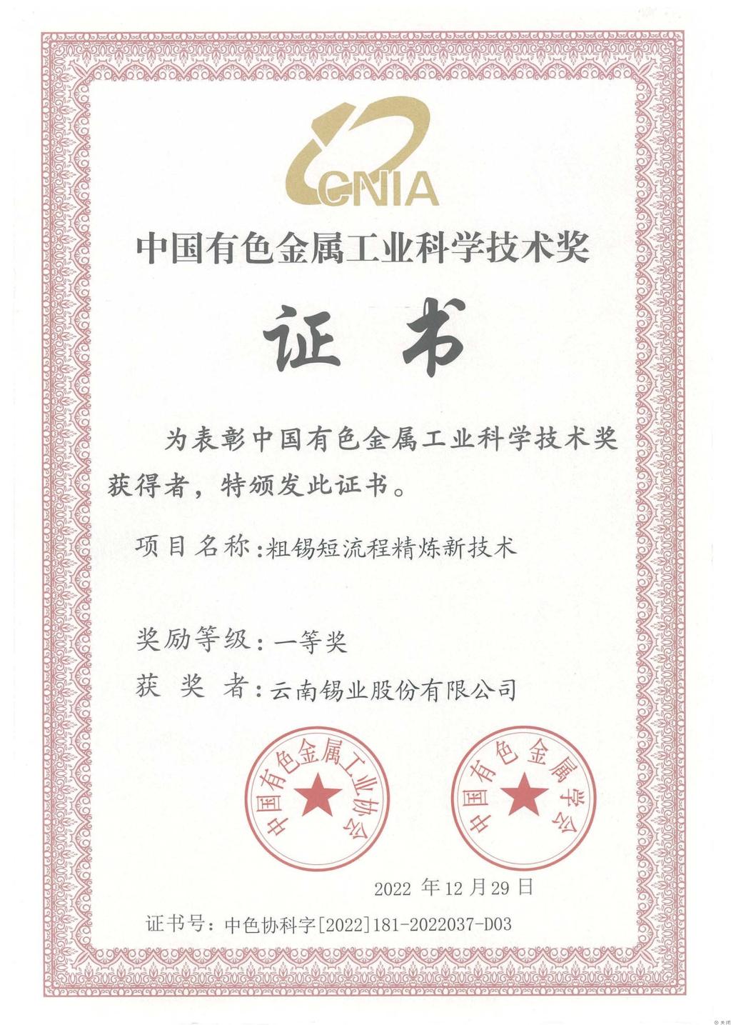 2022年,公司榮獲省部級科技進步獎一等獎2項。