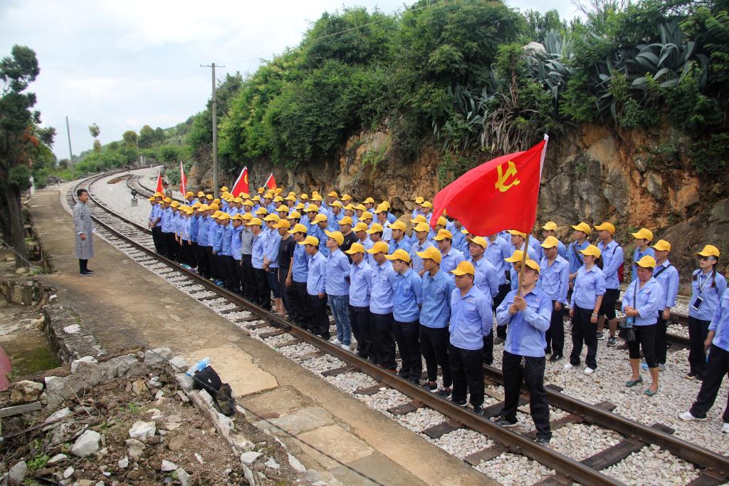 隨后,黨團員們從小東山村徒步前往黑龍潭車站,重走當年革命起義路。烈日下,經過約5公里田間小路、土路、山路、鐵路跋涉,大家仍保持昂揚的精神,共同感受一段革命起義的歷史。