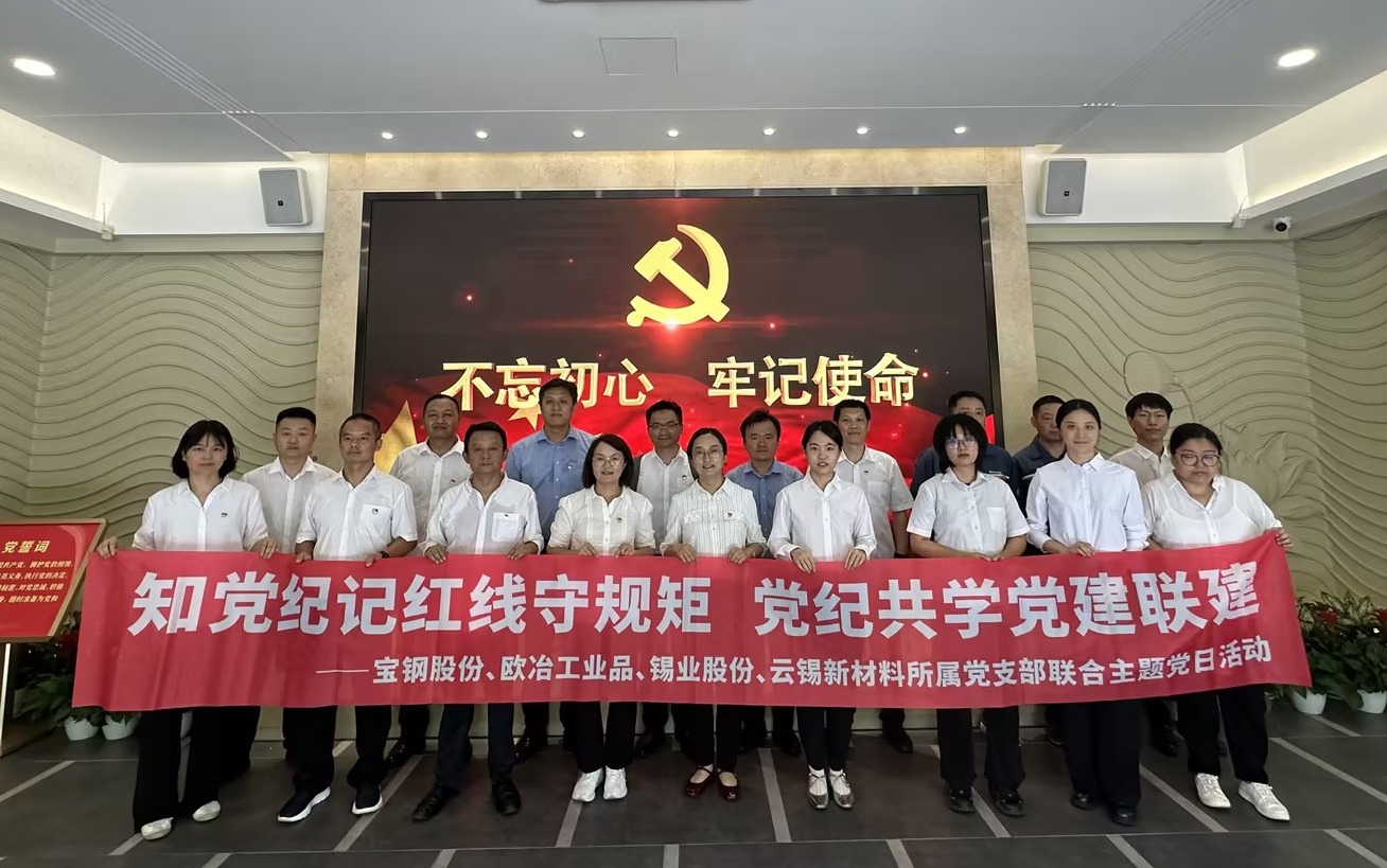 為持續深化產業鏈供應鏈創新鏈黨建聯建共建,在共建方黨委共同統籌推動下,7月5日,云錫貿易(上海)有限公司黨支部牽頭,聯合寶鋼股份冷軋廠1420冷軋工場黨支部,歐冶工業品資材品類黨支部、平臺運營中心黨總支、歐冶采購黨總支及云錫新材料營銷第一黨支部開展“知黨紀記紅線守規矩 黨紀共學黨建聯建”主題黨日活動。