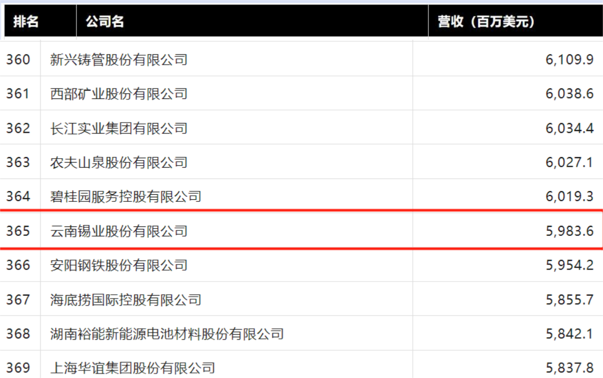 7月25日,2024年《財(cái)富》中國(guó)500強(qiáng)排行榜揭曉,錫業(yè)股份位列365名,這也是錫業(yè)股份連續(xù)15年榮登財(cái)富中國(guó)500強(qiáng)行列,彰顯了錫業(yè)股份發(fā)展實(shí)力和企業(yè)競(jìng)爭(zhēng)力。