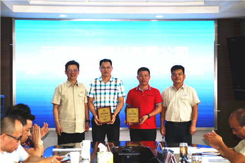 會(huì)上,宣讀了《云南錫業(yè)錫材有限公司經(jīng)銷商管理辦法(試行)》征求意見稿,黨委委員、副總經(jīng)理劉慶富對(duì)1至7月經(jīng)銷商銷售情況進(jìn)行了通報(bào)和分析,白海龍代表錫材公司分別與十個(gè)經(jīng)銷商代表簽訂了《2019年度經(jīng)銷商市場(chǎng)推廣和銷售目標(biāo)責(zé)任書》,王鵬飛和白海龍還給10個(gè)經(jīng)銷商頒發(fā)了“授權(quán)經(jīng)銷商”的牌匾。