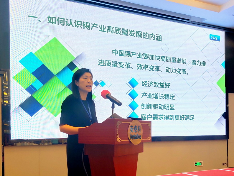 在大會(huì)報(bào)告環(huán)節(jié),楊奕敏應(yīng)錫業(yè)分會(huì)安排,緊緊圍繞“錫產(chǎn)業(yè)高質(zhì)量發(fā)展”作主題報(bào)告。報(bào)告指出:當(dāng)前,世界經(jīng)濟(jì)形勢(shì)撲朔迷離、國(guó)際貿(mào)易環(huán)境深度調(diào)整,中國(guó)經(jīng)濟(jì)社會(huì)發(fā)展進(jìn)入新時(shí)代,在此大背景下,中國(guó)錫產(chǎn)業(yè)也要加快高質(zhì)量發(fā)展,著力推進(jìn)質(zhì)量變革、效率變革、動(dòng)力變革。