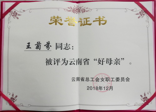 老廠分公司職工王菊芬獲云南省“好母親”榮譽稱號