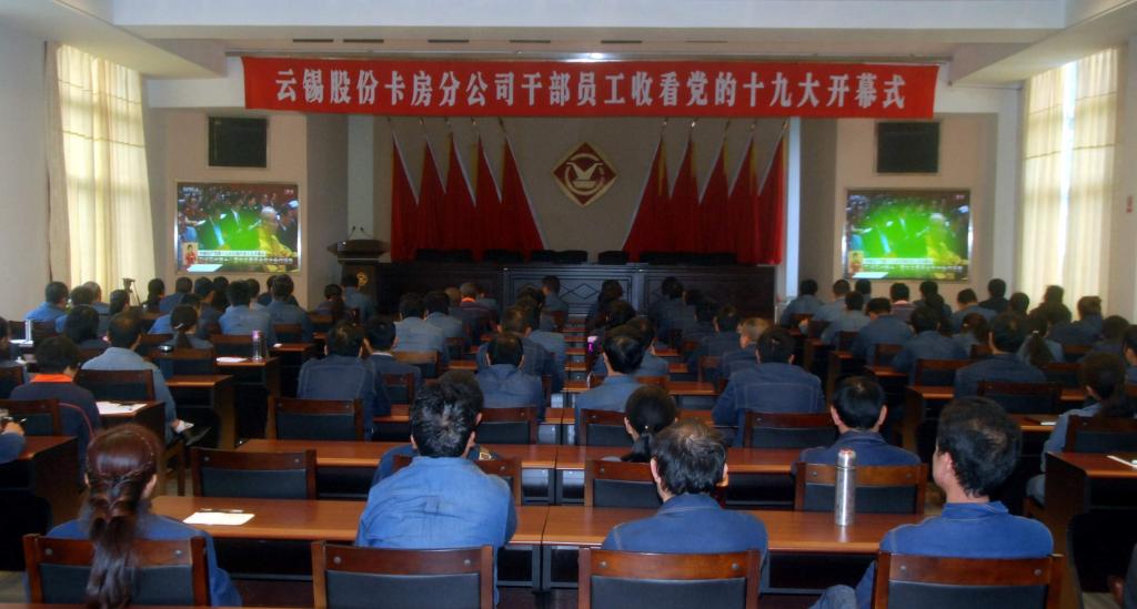 云錫控股公司和錫業股份機關黨員干部職工260余人在云錫賓館報告廳進行了集中收看。兩級公司領導班子成員與干部員工一起收看了黨的十九大開幕會盛況。
